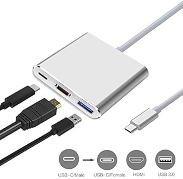Amazon Com Usb C To Hdmi Multiport Adapter 3 In 1 Usb C Hub Thunderbolt 3 To Hdmi 4k Usb 3 0 Pd Charging Port Multiport Usb C Adapter For Macbook Pro Air Imac Chromebook Etc